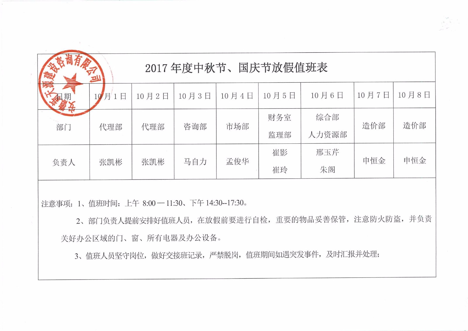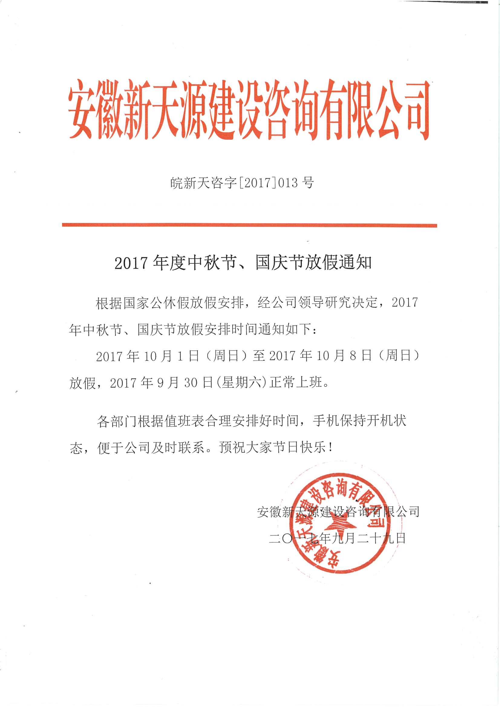 - 2017年度中秋節(jié)、國慶節(jié)放假通知